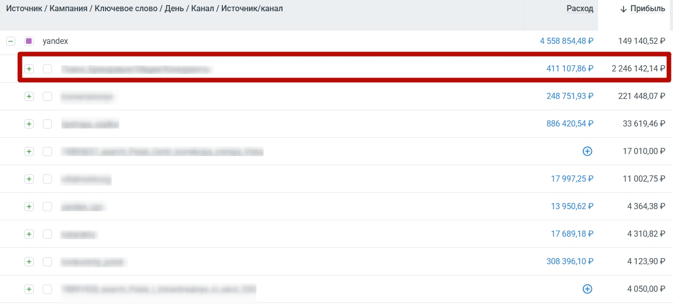 Скриншот — пример из реального медицинского проекта: важны не только лиды, но и прибыль, которую приносит каждая рекламная кампания.